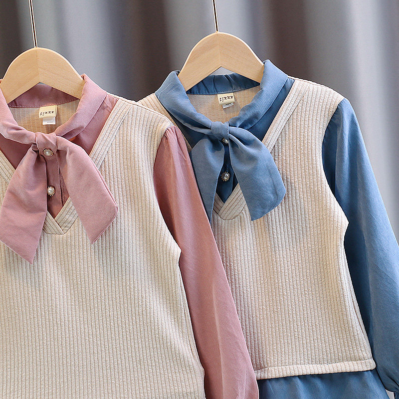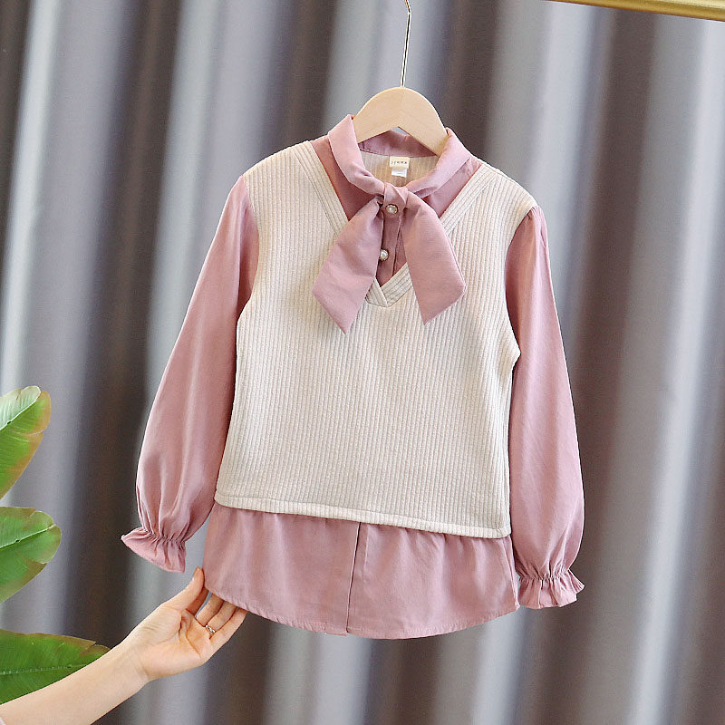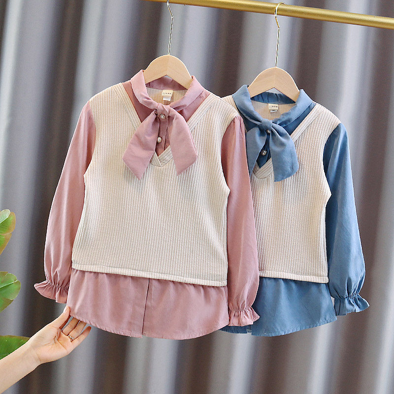 Girl Shirt Spring Autumn 2022 New Foreign Pie Trendy CUHK Fairytale Girls Fake Two Children's Shirts