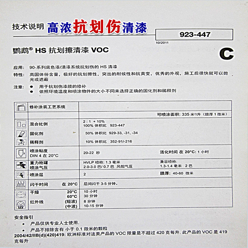 Parrot car paint 923-447 high concentration scratch-resistant varnish VOC car transparent bright oil quick-drying curing agent 4S