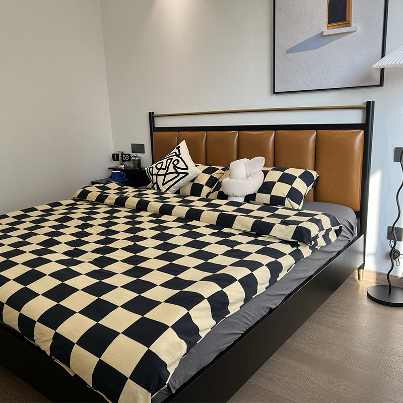 light luxury leather solid wood bed