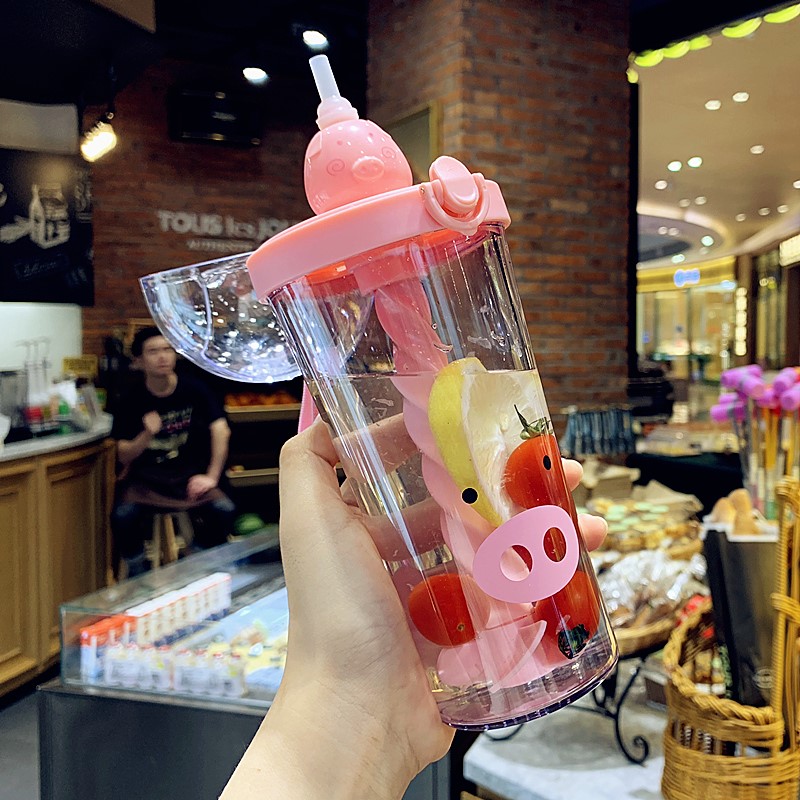 Children's teacup straw cute girl water cup super cute 2021 new net red ins wind Japanese plastic drop resistance