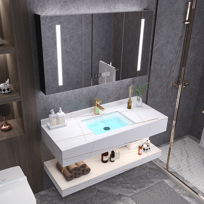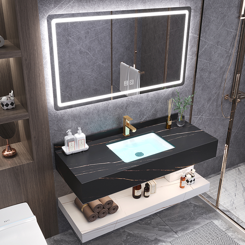 Bathroom wash basin cabinet combination rock slab integrated bathroom cabinet light luxury bathroom washstand smart hotel washbasin