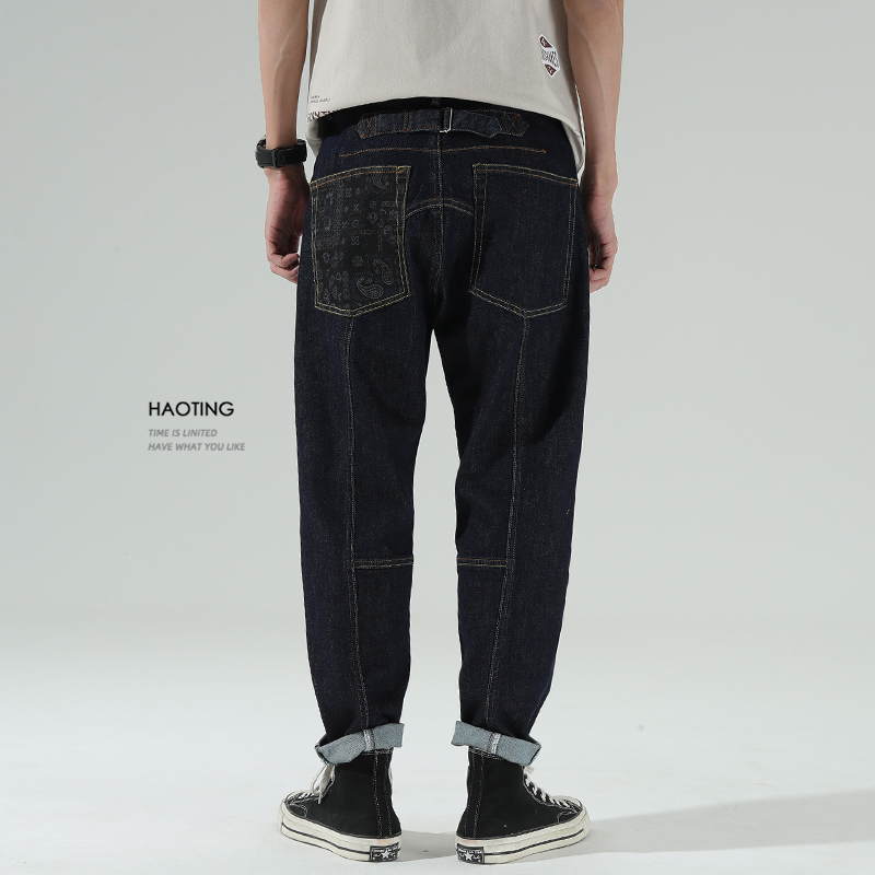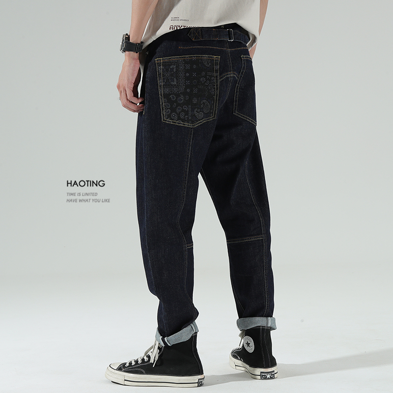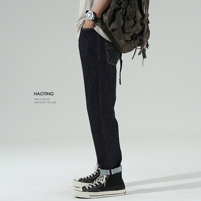 Retro Paris buckle primary color jeans men's elastic workwear straight cropped pants spring and autumn Ami khaki casual pants trendy
