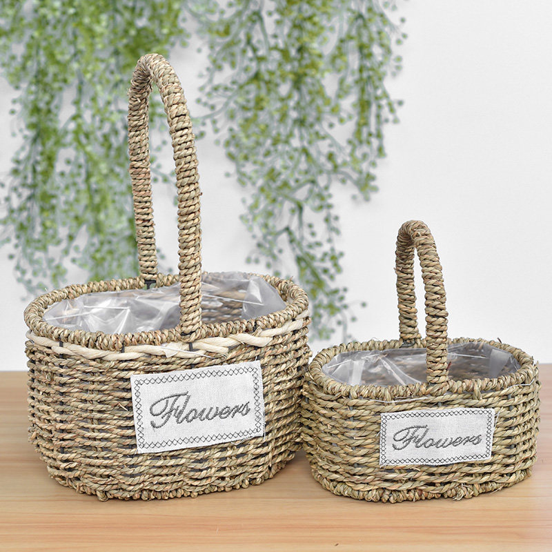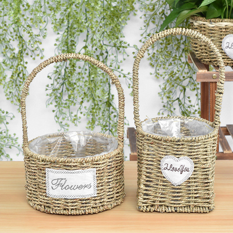 Flower basket weaving rattan creative pot vegetable blue flower girl living room flowers photo fruit flower pot wedding wall hanging flower basket