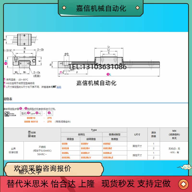 LINEAR GUIDE SSEBL SSEBLZ SSEB8 G L-40 55 70 85100115 85100115 SSEB8-130