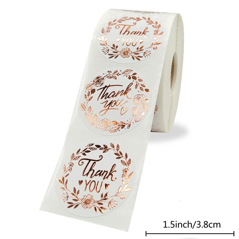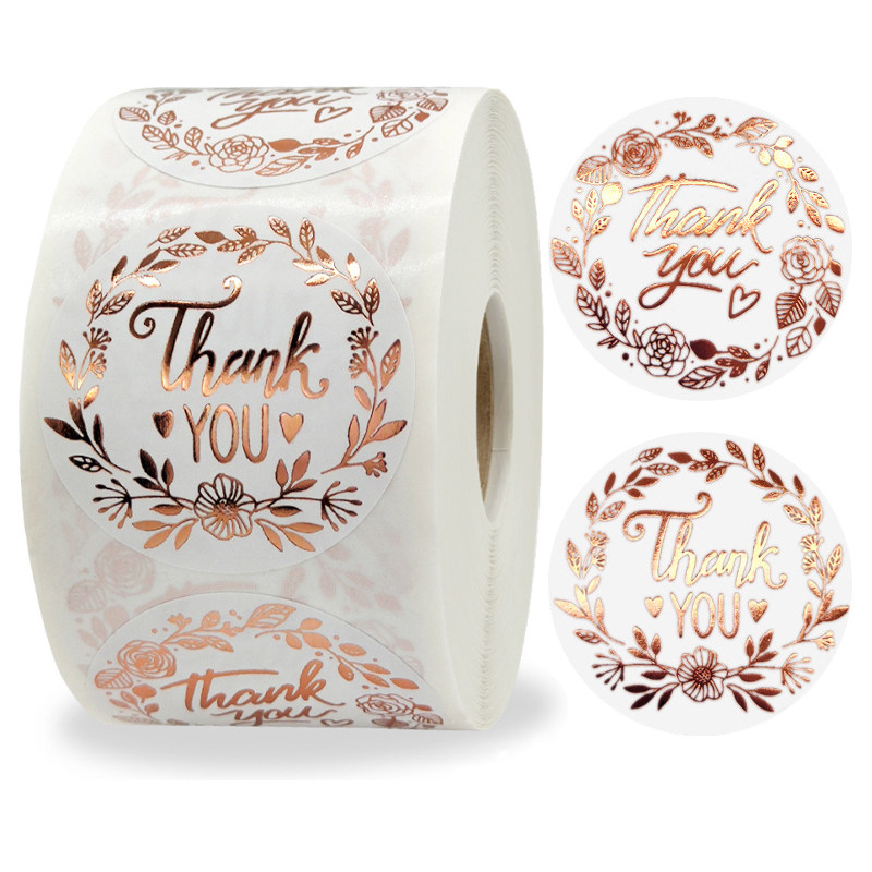 500pcs roll bronzing rose flower thank you sticker business gift sealing sticker wedding decoration self-adhesive label