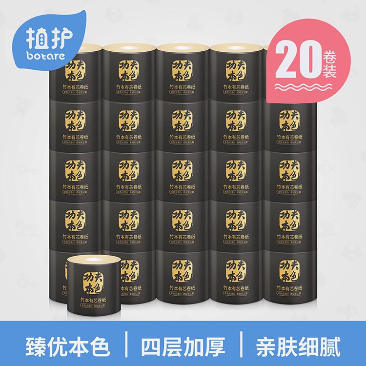 Plant care new other bamboo pulp core roll toilet paper 20 rolls of household toilet paper FCL family pack affordable toilet paper
