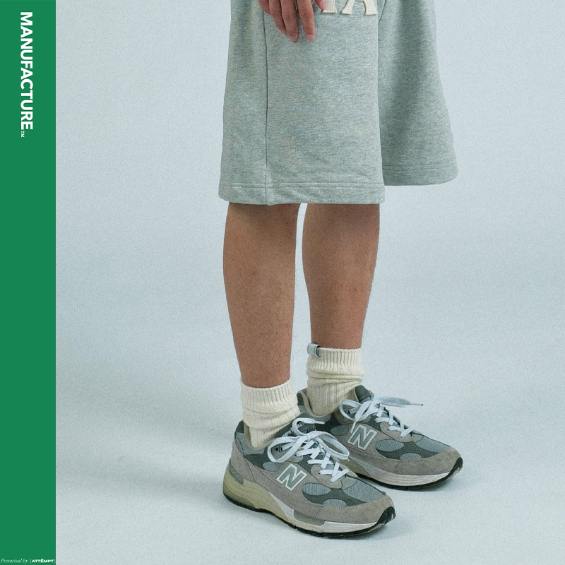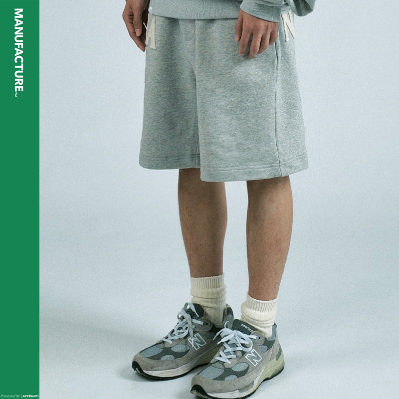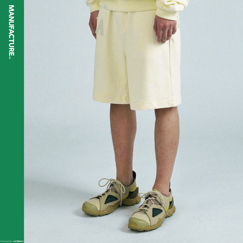 MANUFACTURE BY ATTEMPT FELT LOGO KNIT SHORTS