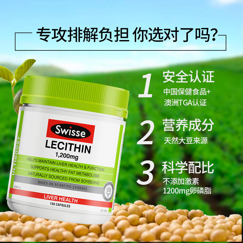 (Bonded straight hair) Australia Swisse lecithin soft capsules middle-aged fish oil soybean lecithin 300 tablets