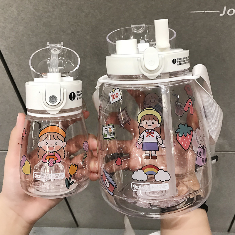 Super-capacity water glass straw cup grown-up woman cute high face value mug net red girl student portable plastic cup