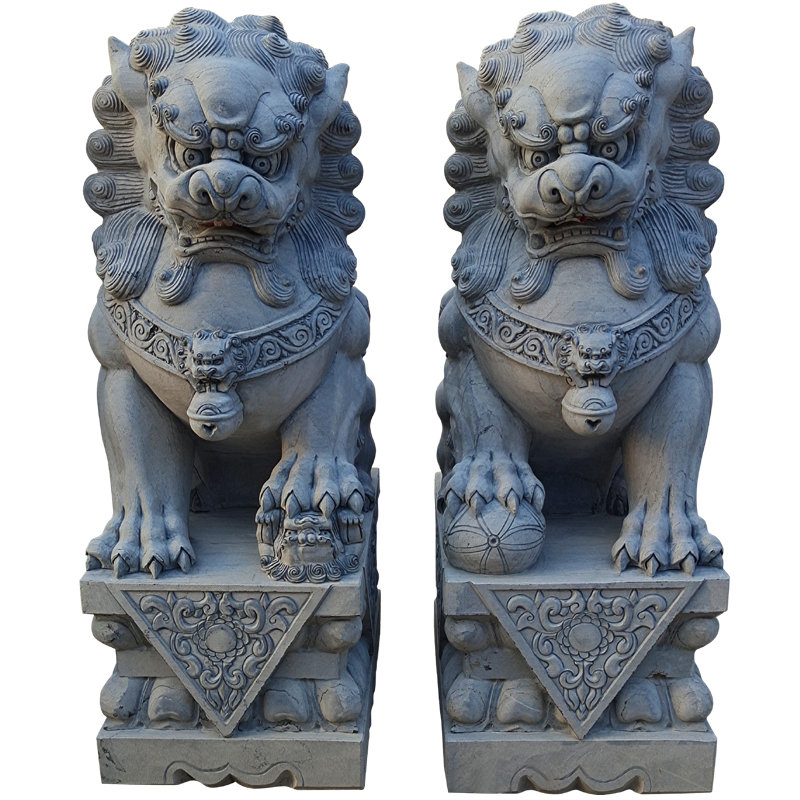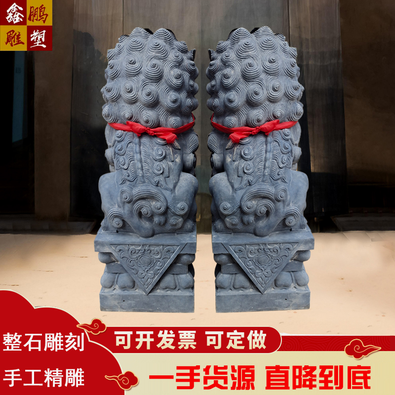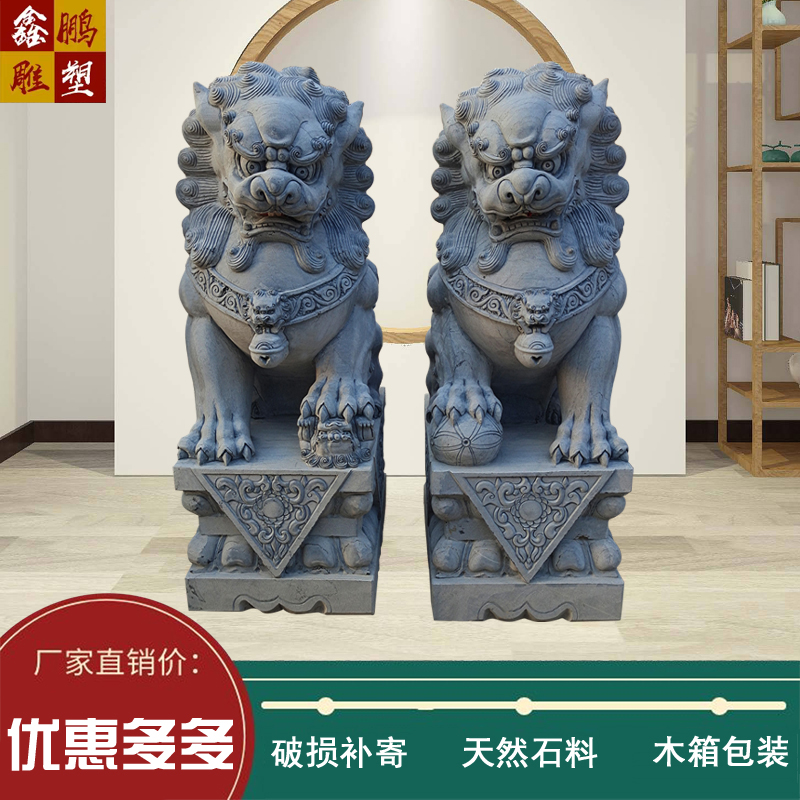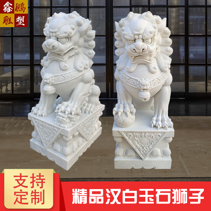 Stone carved lion a pair of watchmen town door to the door to the door to the door to the temple of the temple of the temple white jade stone Lion