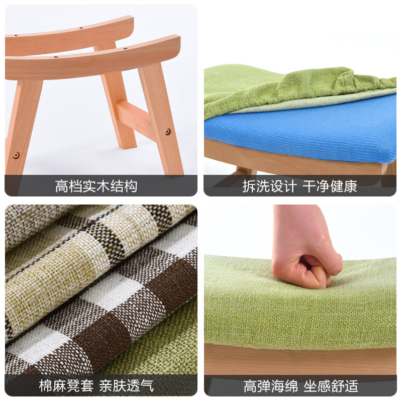 Solid wood small stool for home wearing footstool doorway for shoe-changing stool living-room tea table stool small bench sofa stool cloth art short stool