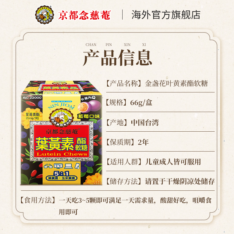 Kyoto Nianji Lutein Soft Sugar Children Blueberry Taste Lutein Student Adolescent Eye Care 2 Boxes