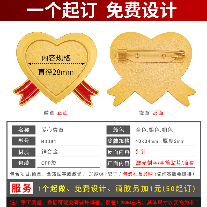 Metal badge custom custom brooch custom excellent staff school badge volunteer medal love anti-epidemic medal