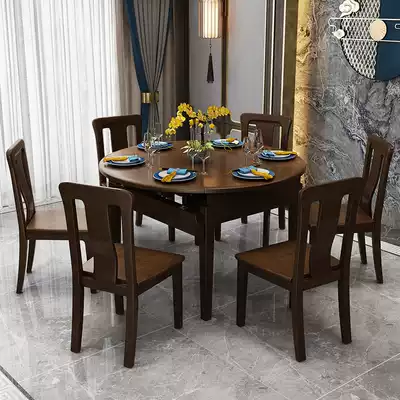 Solid Wood retractable dining table and chair combination light luxury multi-function folding table home Square dual-purpose 8-person dining table
