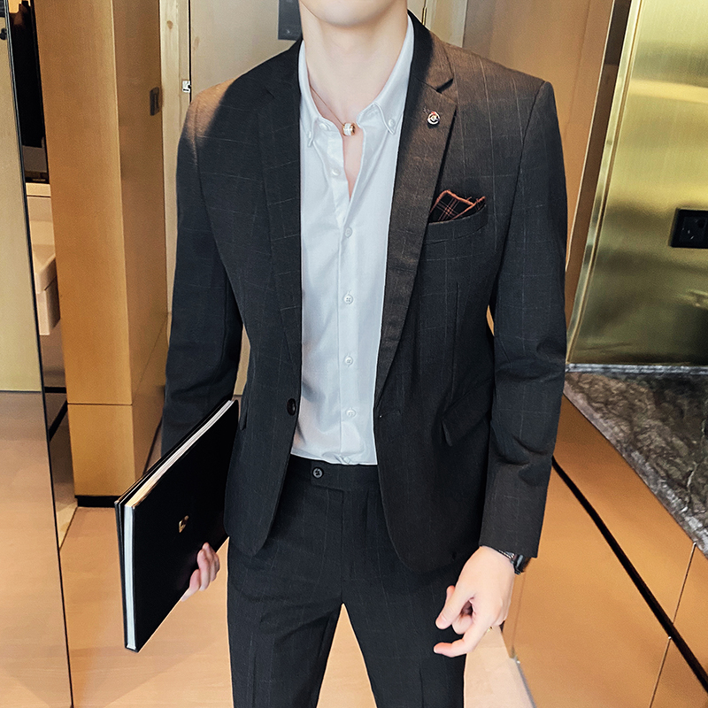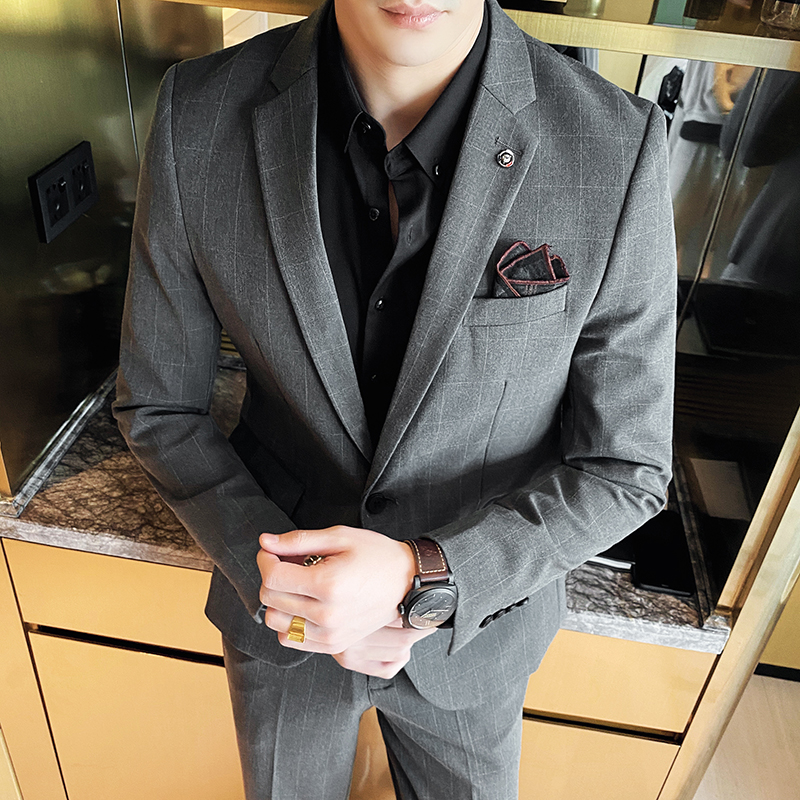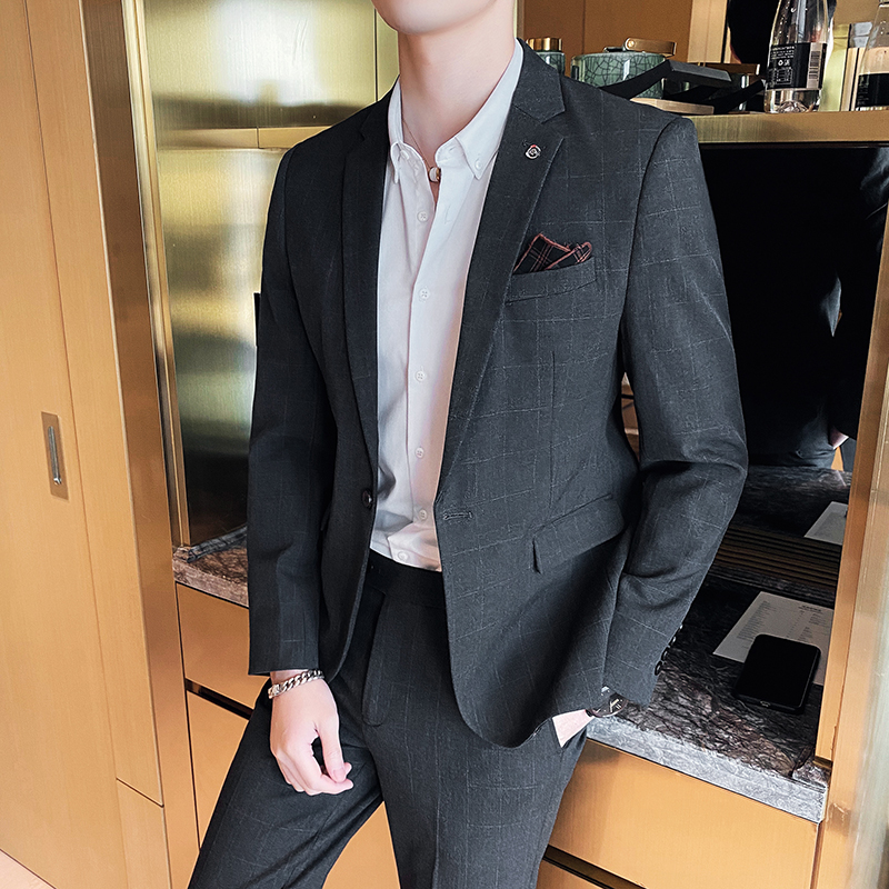 early spring men's suit pants plaid slim fit british business formal groom wedding dress suit