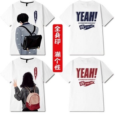 Pure white T-shirt round neck advertising shirt short-sleeved men's loose white round neck cultural shirt custom class uniform printed LOGO team