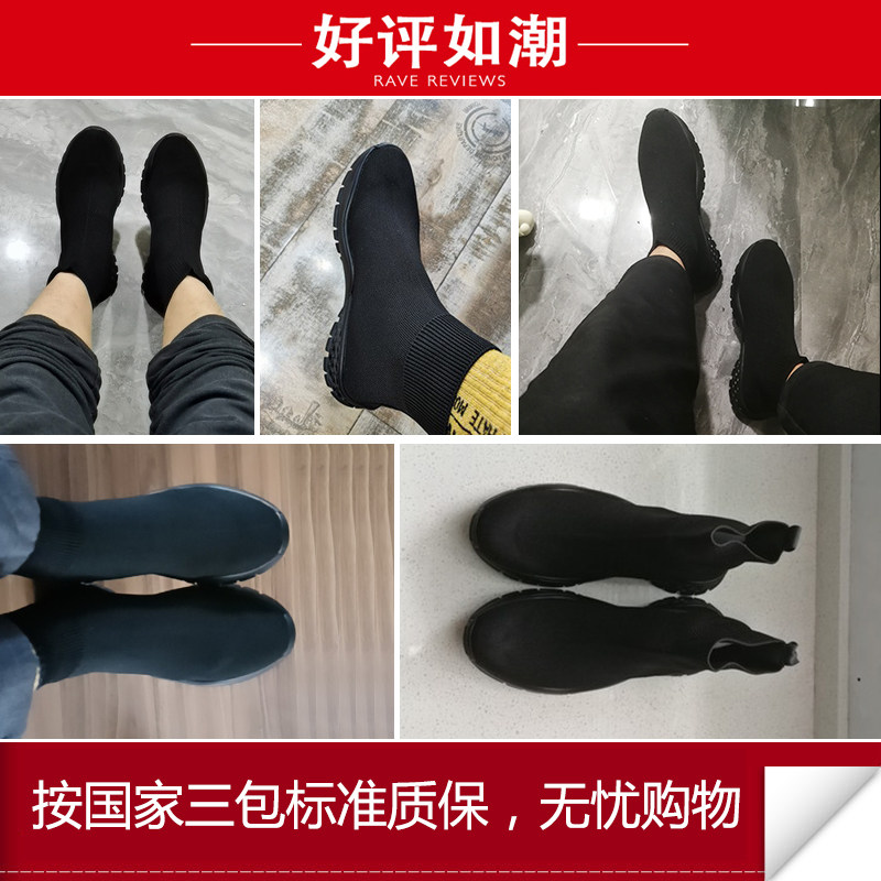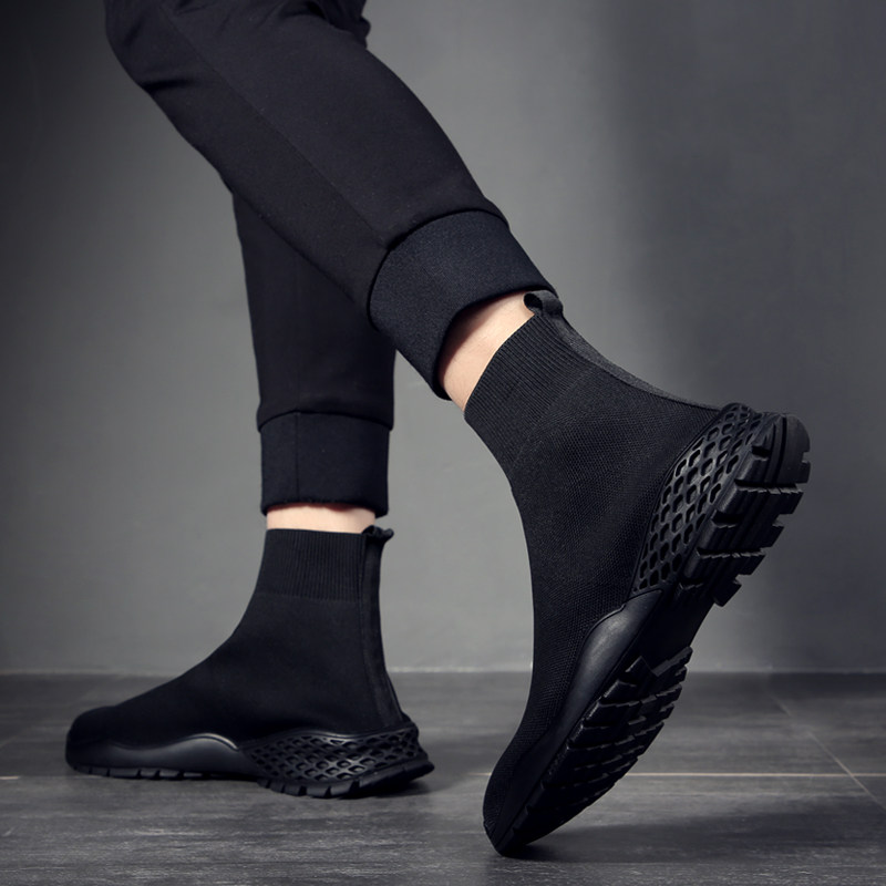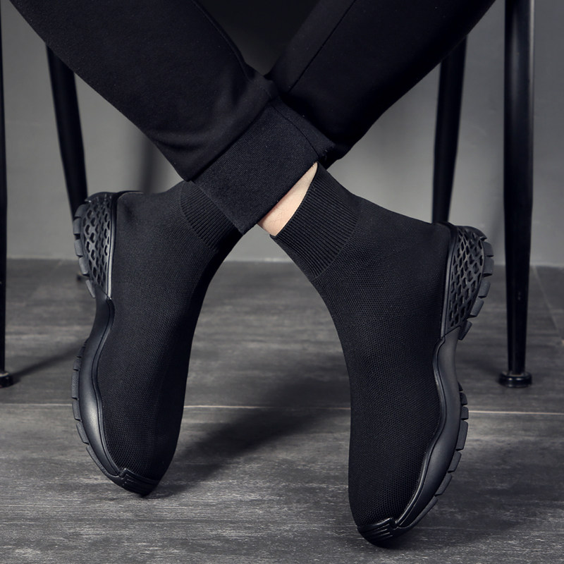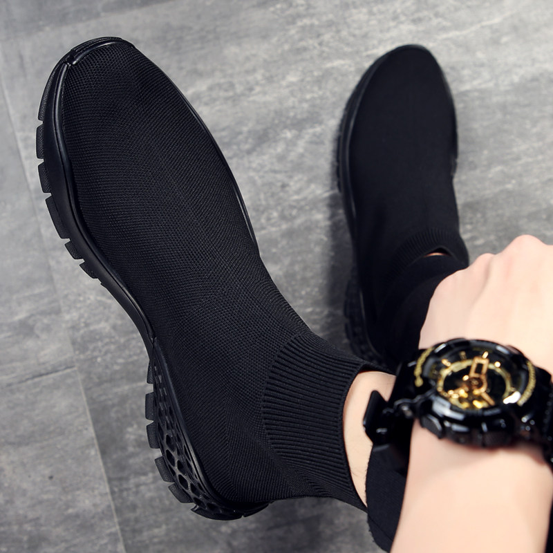 Socks Shoes Man High Drum Summer Breathable Sails Shoes Knit Shoes Korean Version Flying Weave Casual Shoes Elastic Black Tide Shoes