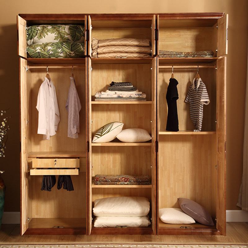 modern Chinese style full solid wood wardrobe home bedroom economical large closet small apartment locker wooden furniture