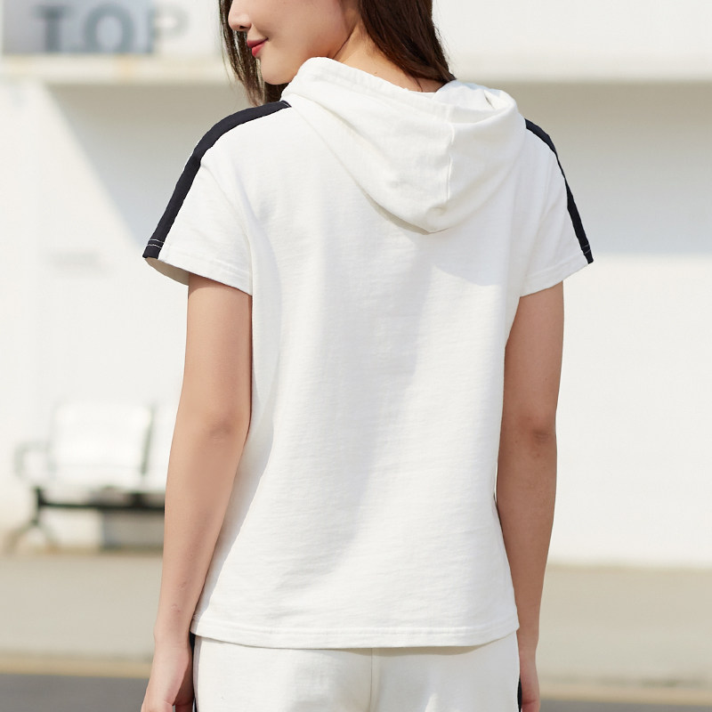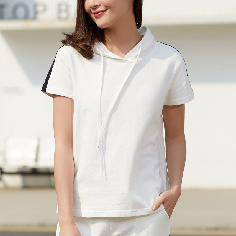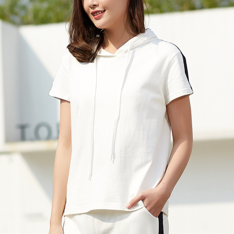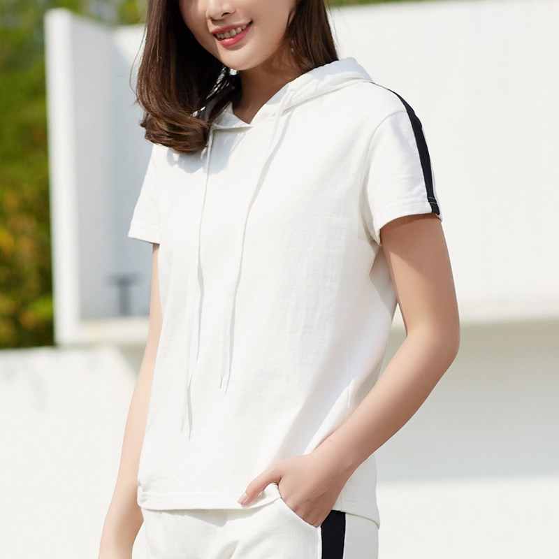 Hooded short-sleeved T-shirt women's 2022 summer new sports and leisure pure cotton thin thick cotton T white striped jacket