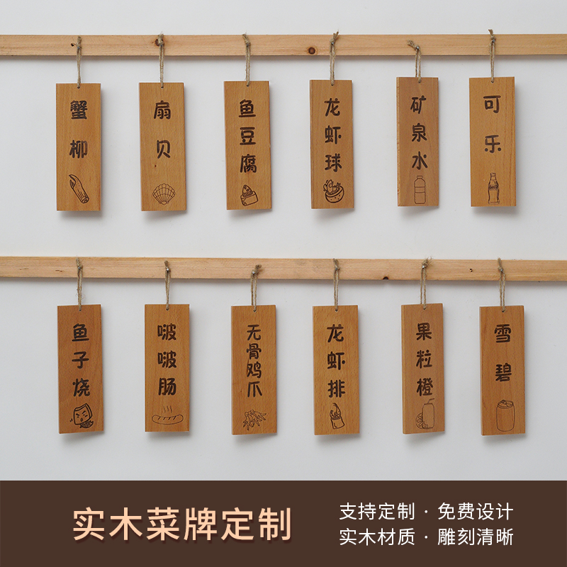 Solid wood tailored barbecue wooden wooden barbecue shop wooden plate listed carving graphic pattern menu