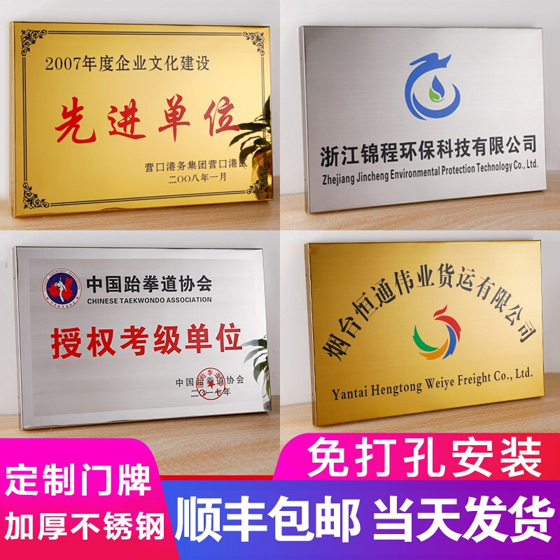 Bronze set to make custom company doorplate stainless steel listing sign door headboard Plaque Factory Card Making Billboard