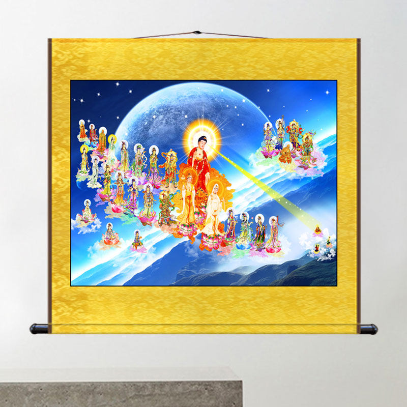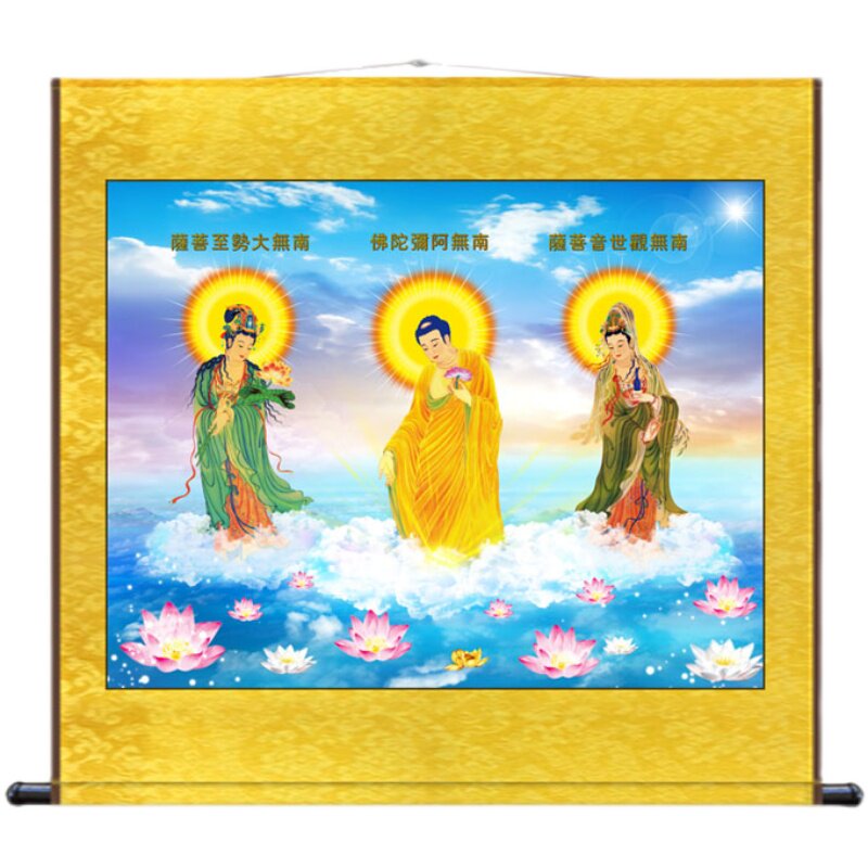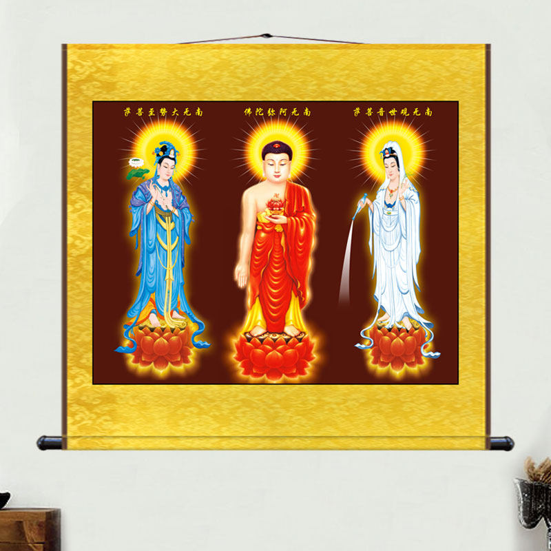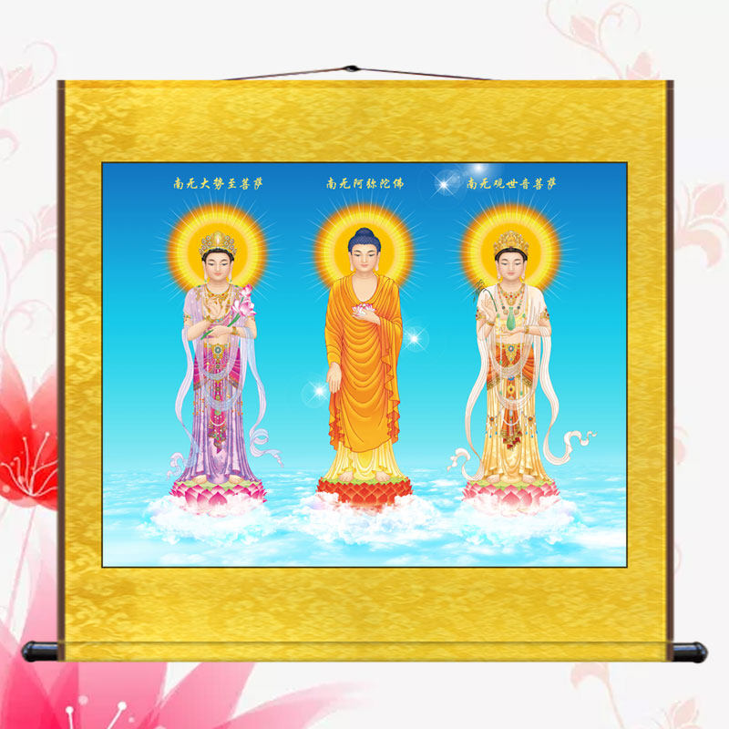 The Amitabu Buddha portrait hangs painting the Western Three Holy Hanging Paintings Great Trend to BodhisattBodhisattva Guanyin's Bodhisattva Buddha Buddha Buddha Hall