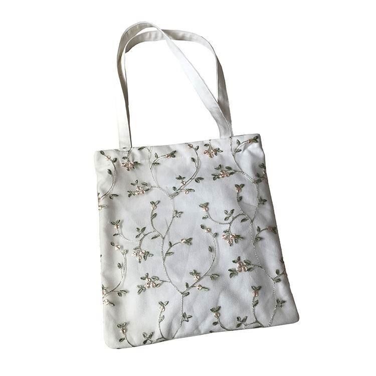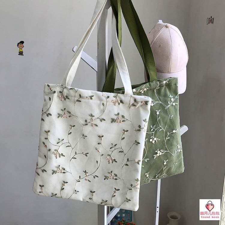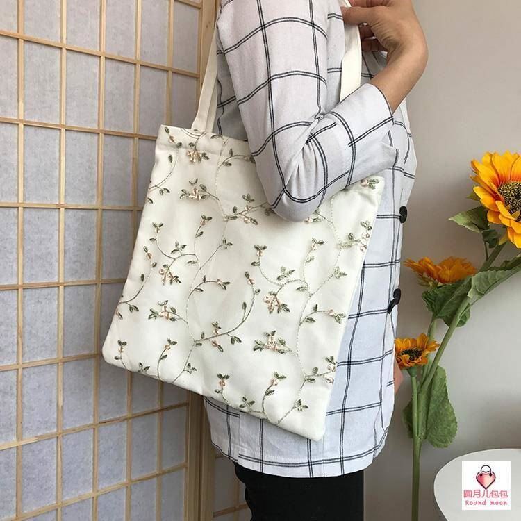 Lace Canvas Bag Day Tying girl kits 100 hitch South Korean art Mori Faculty Wind Soft girl Single shoulder bag Chains