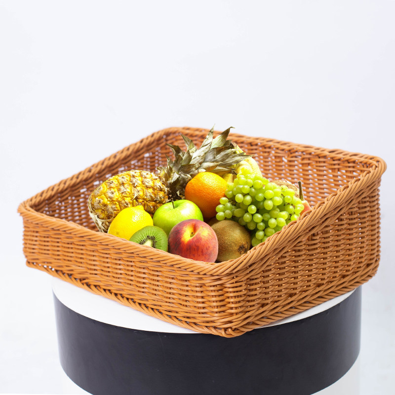 Imitation rattan fruit supermarket oblique side storage basket plastic living room dining bread snack plate fruit and vegetable display basket