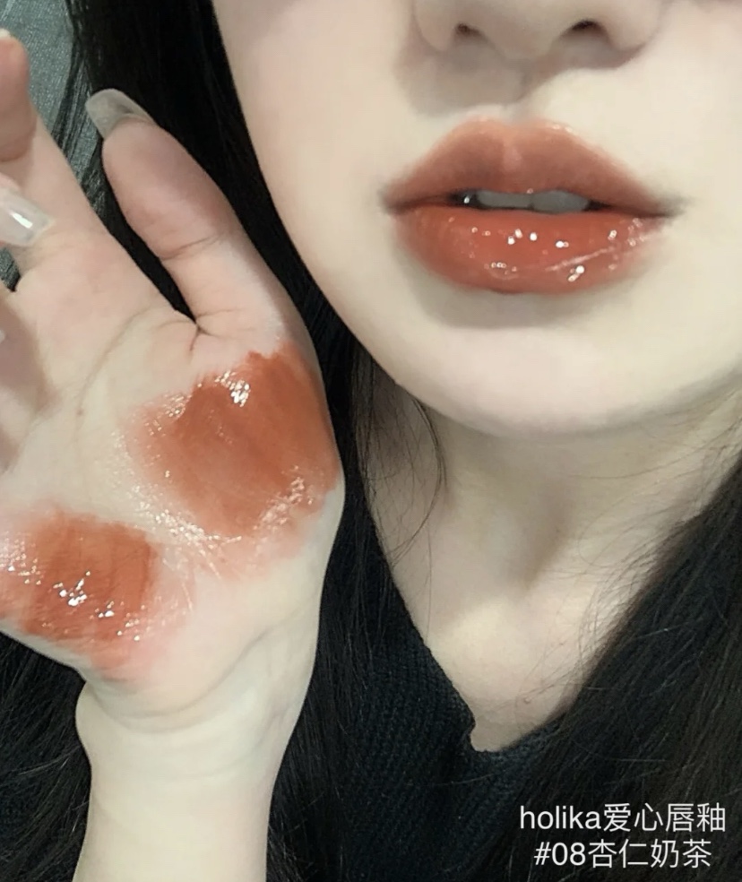 Korea Holika loving mirror lip glaze 08 06 14 apologems gentle almond naked orange clear through lipstick