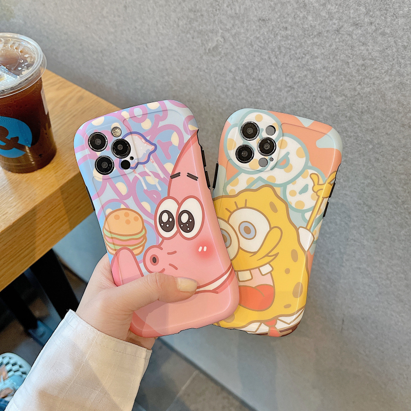 ins cartoon spongebob iphone12 13 mobile phone case apple 11promax creative all-inclusive xsmax xr couple 7p 8plus anti-fall 1