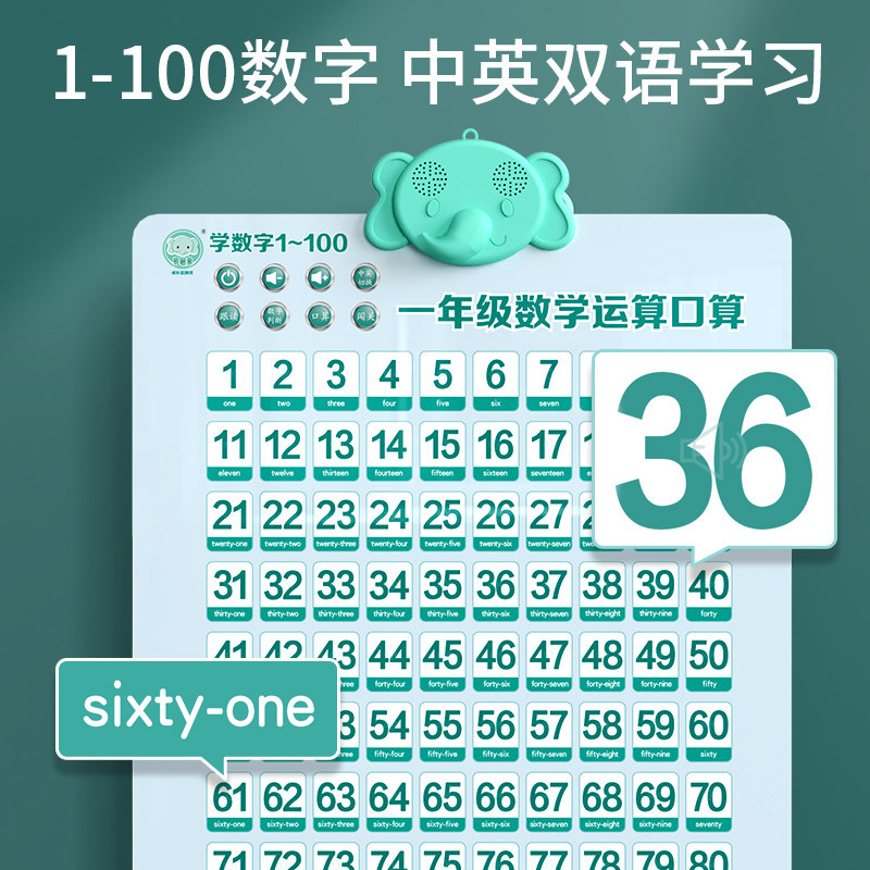 Math flip chart with sound 1 to 100 numbers within 20 addition and subtraction first grade nine nine multiplication trick table wall paste large