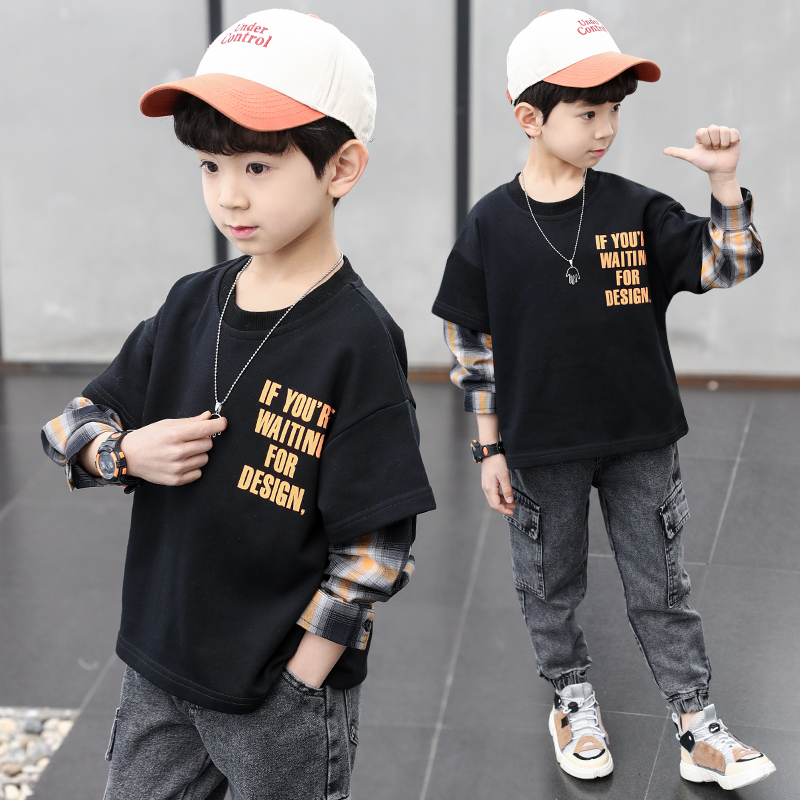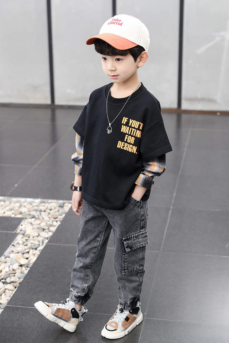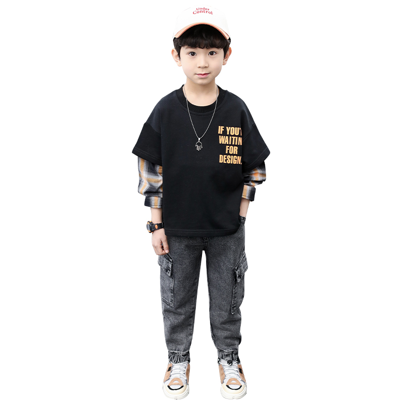 South Korean boy's clothing boy suit Cowboy pants 2021 new CUHK Scout for the Spring and Autumn Two sets