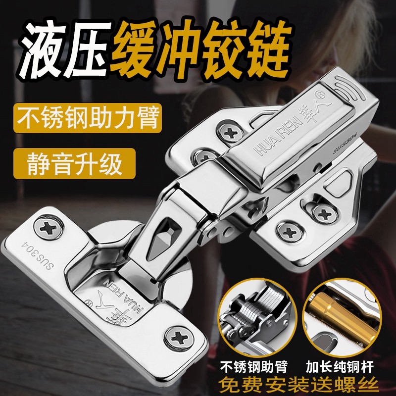 Cabinet door hinge 304 stainless steel hydraulic damping buffer straight bending full cover wardrobe whole closet cabinet door tobacco bucket spring hinge
