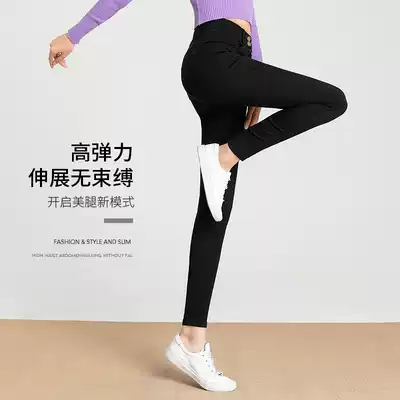 Interior pants fat mm large size 200 jin women wear spring and autumn thin Magic thin waist elastic feet fat sister