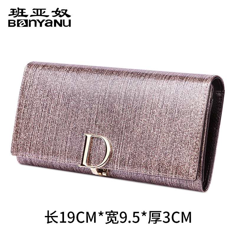 2022 new long women's wallet clip gold net red letter buckle hand holding fashion large capacity multi-card slot real cowhide foreign trade