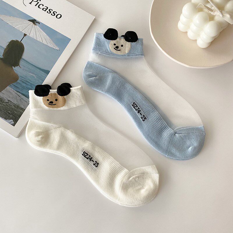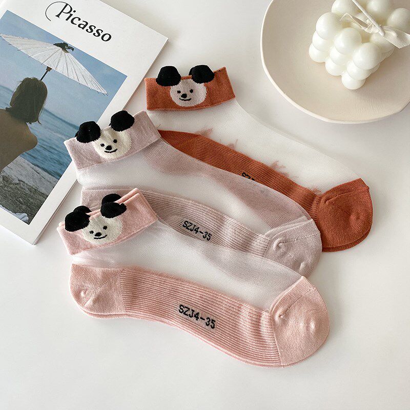 Net red summer thin crystal socks shallow socks in tide Korea cute cartoon bear glass wire