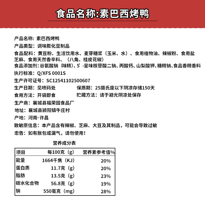 Zhengjiesu Brazilian Roast Duck Vegetarian Spicy Strips 8090's Childhood Nostalgic Snacks Sweet and Spicy Leisure Bean Products