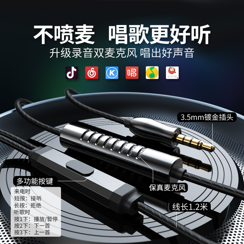 Platinum Mai i9 Headphones Wired In-ear Style With High Sound Quality Gaming Mobile Phone Computer Electric Race Sound Arguments Eat Chicken Exclusive Listening To Heavy Bass Men And Women Universal with wheat Noise Reduction Applicable to Huawei hifi