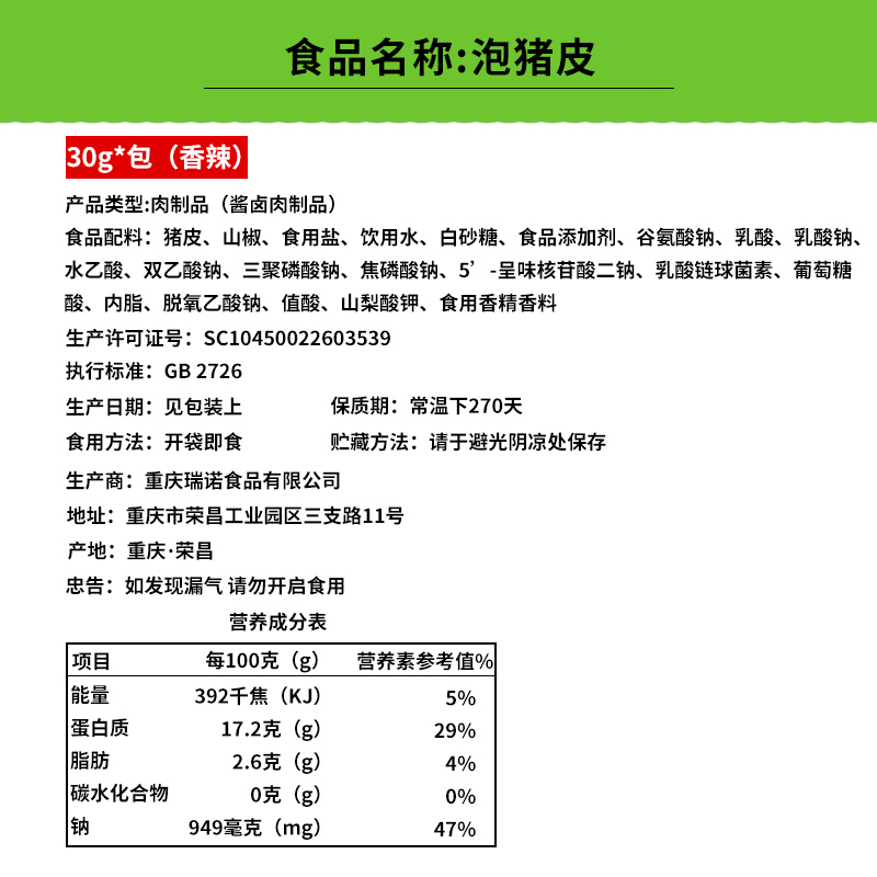 Bubble House Pickled Pepper Pig Skin 30g*30 Small Packages Mountain Pepper Braised Pork Ready-to-eat Cooked Food Relief cravings chasing drama zero food