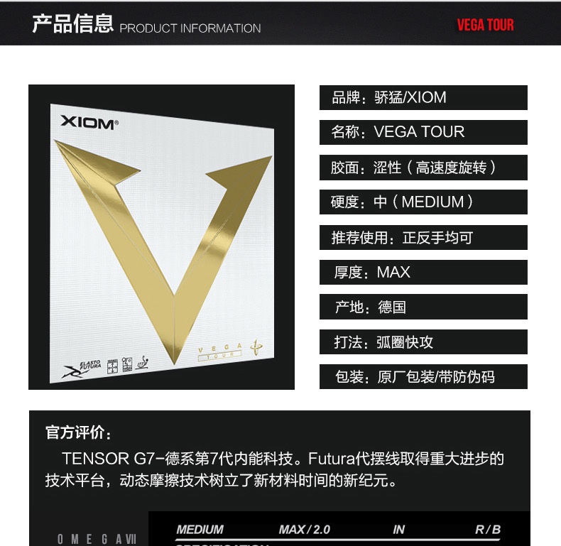 (Kirin)XIOM Pride Gold V 79-060 Weijia Vega Tour Table Tennis Rubber Rubber Cover