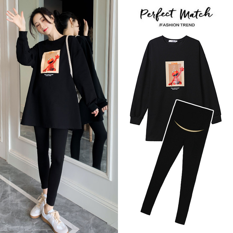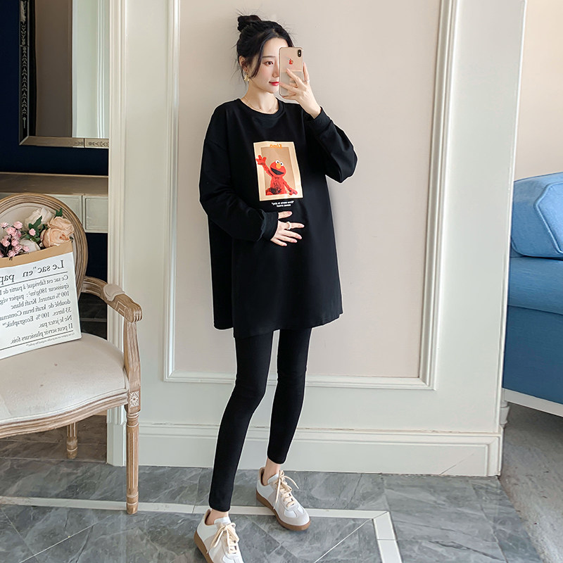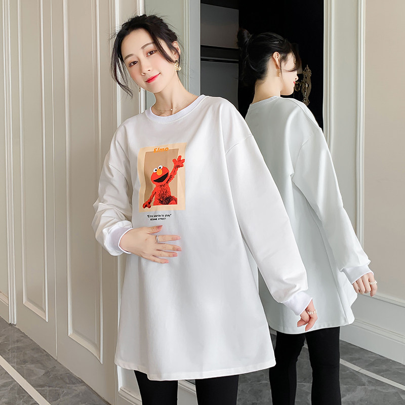 Pregnant women's spring clothing suit stylish cover tummy T-shirt with long version of spring and autumn 2021 new foreign pregnant women's blouses