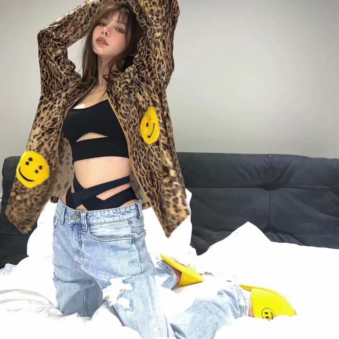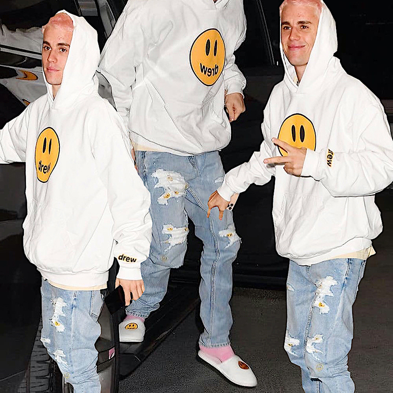 Bieber Ouyang Nana with the same Drew smiley face to destroy the washed embroidery couple cowboy men and women high street style