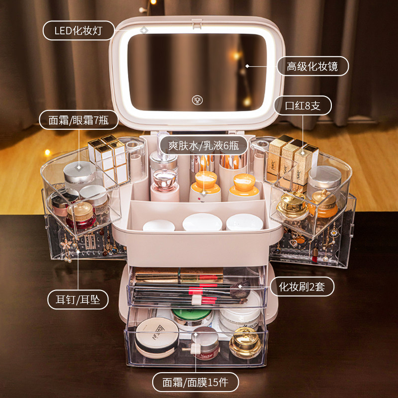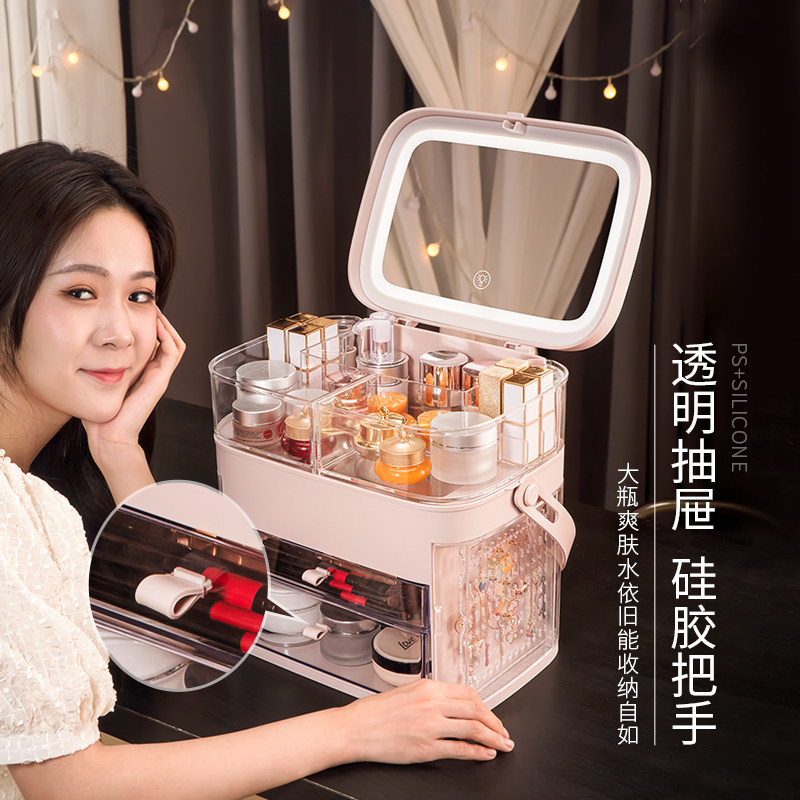 Net red makeup bag storage box box with light large capacity partition 2021 new 2022 senior high-end portable women