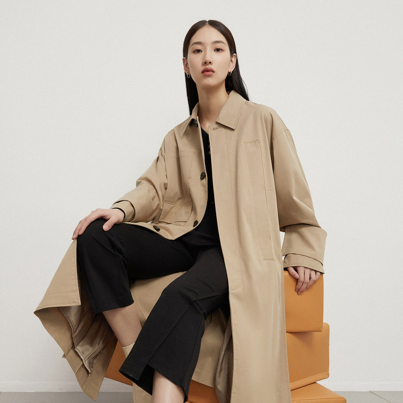 Lovers MECITY Chunqiu Fashion Temperament Casual Cashew cashiers Long version of the wind clothes jacket Female 534200