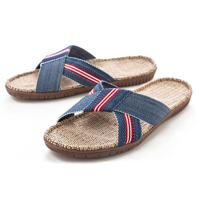 Shuo brand denim couple men and women indoor thick bottom non-slip home not foot odor antibacterial wear linen slippers summer