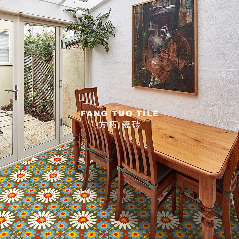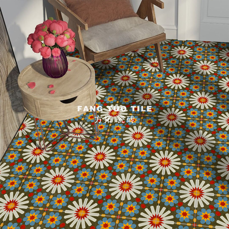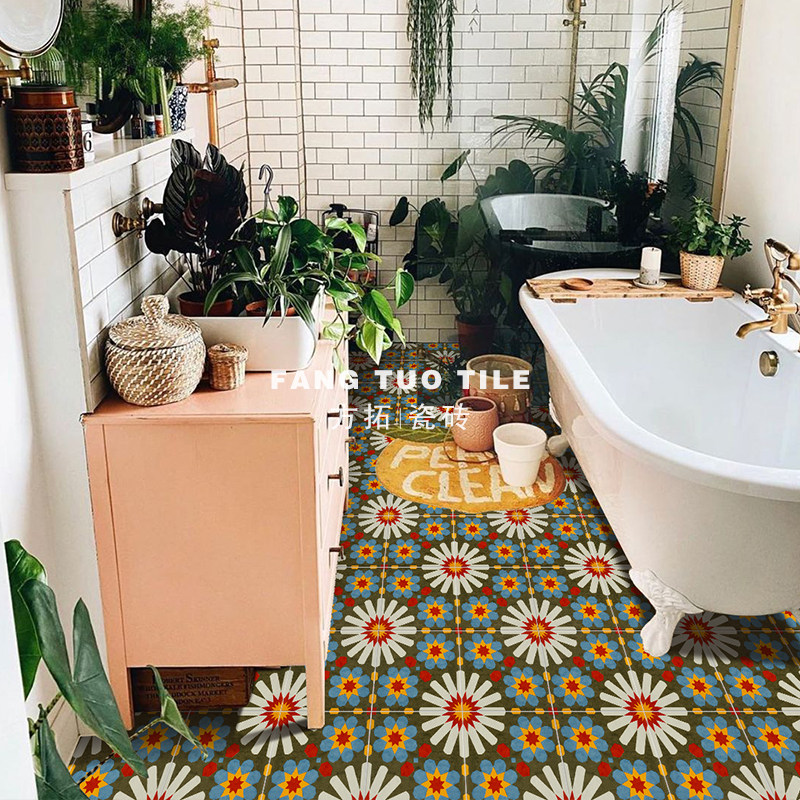 Total Porcelain Nordic Retro Ins Small Flower Brick Make-up Room Kitchen Non-slip Floor Tiles Dining Room Bathroom Toilet Art Wall Brick