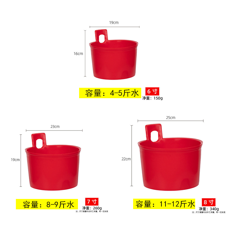 Green 6 inches -4-5 catty of water (without handle) Coffee color 6 inches-fit 4-5 catfish (without shank) white 6-inch-fit 4-5 catfish (without handle) red 6 inch with -4-5 catty of water