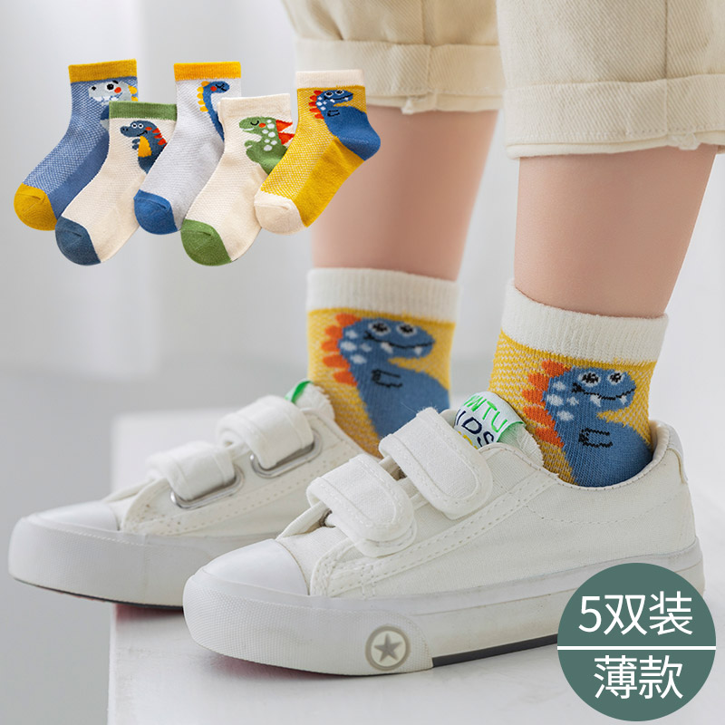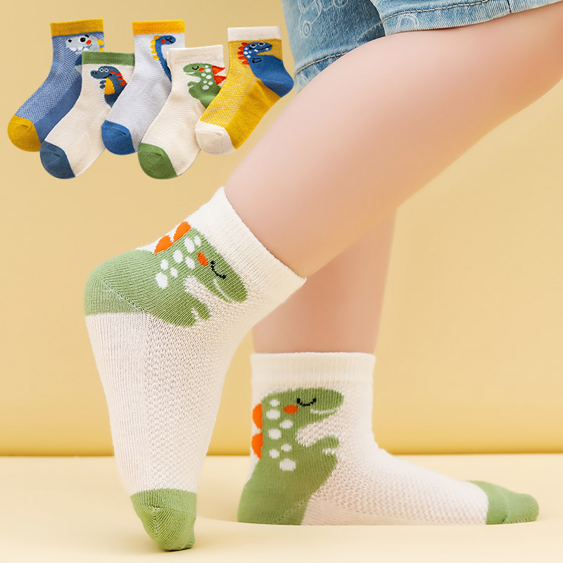 Boys socks thin children's spring and summer mesh socks breathable cotton baby cartoon dinosaur girls mid-tube socks