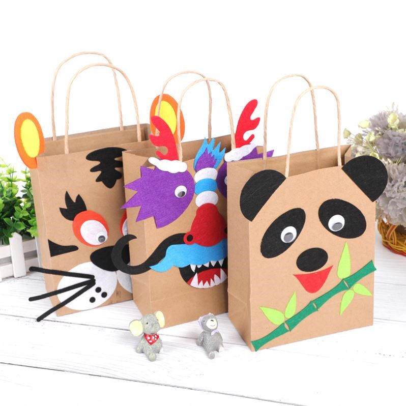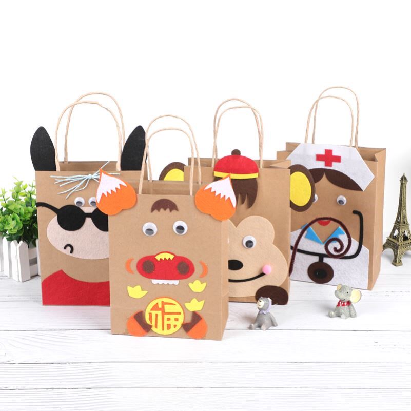 Children's kindergarten handmade works semi-finished Lidong Environmental Protection Area Material small animal paper bag diy