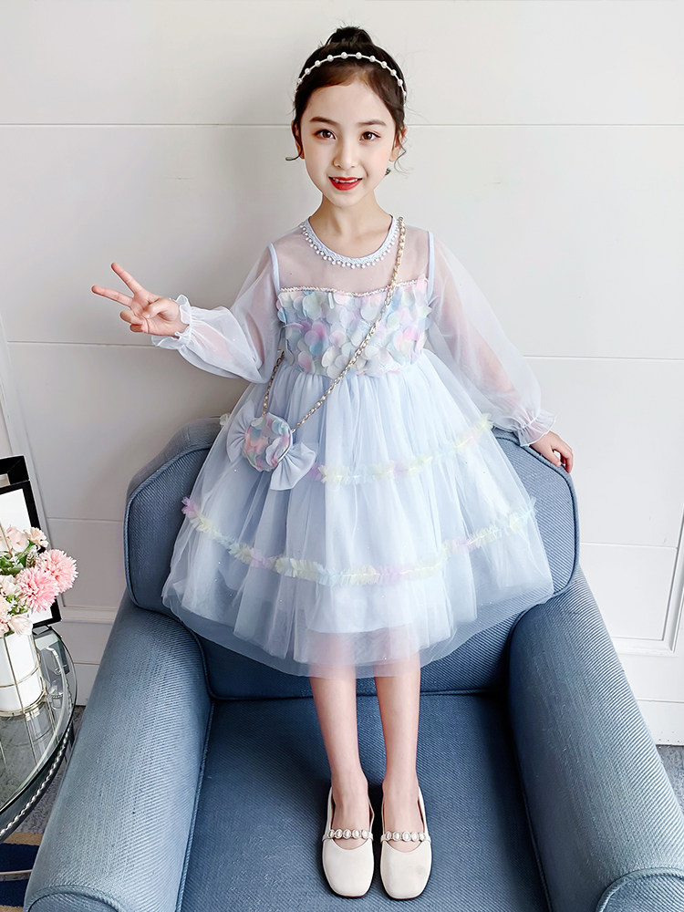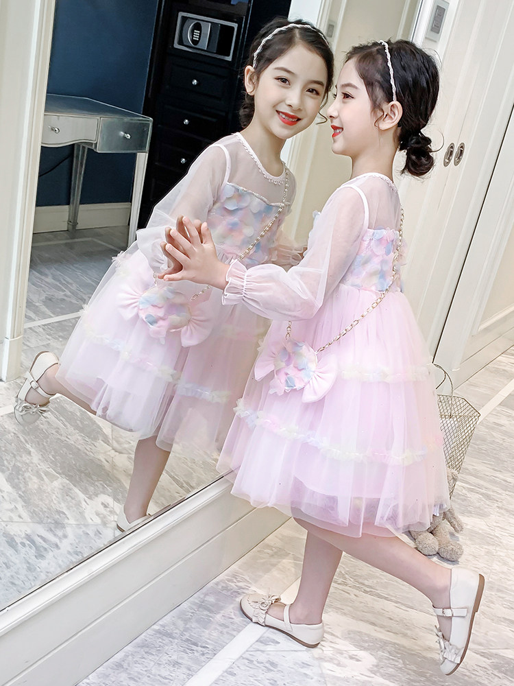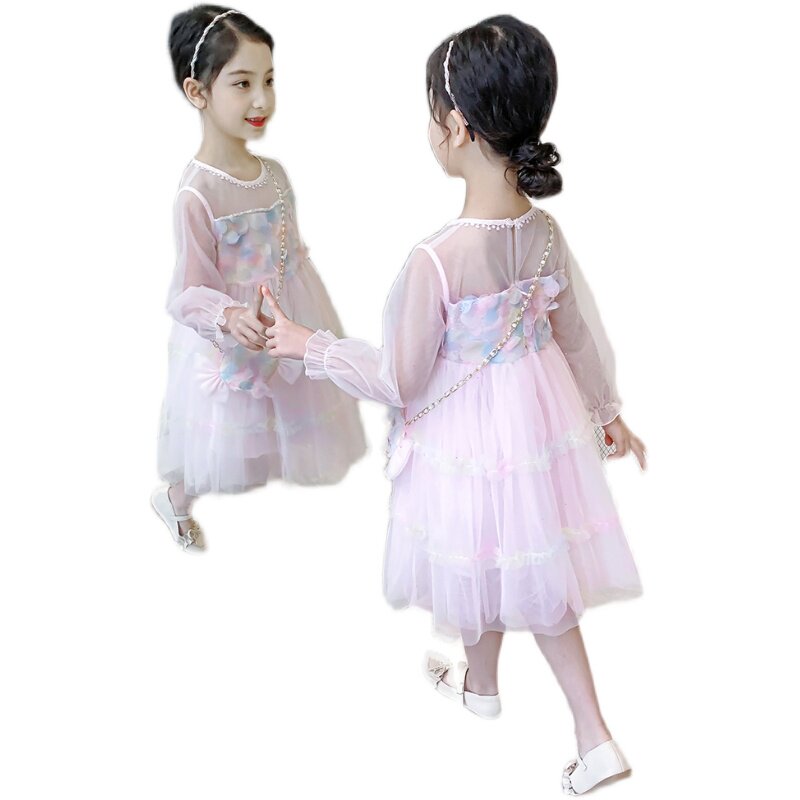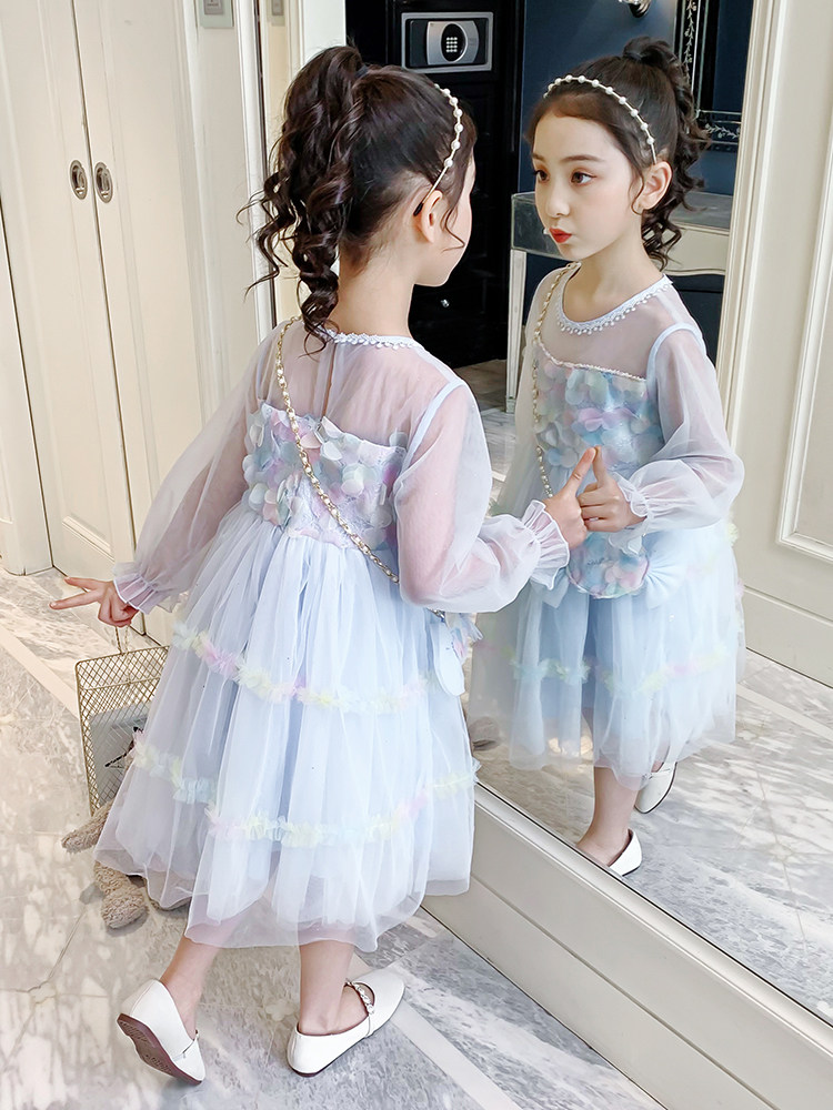 Hong Kong tide brand girls mesh skirt spring 2021 new Korean version of the Western style children's princess skirt net red dress